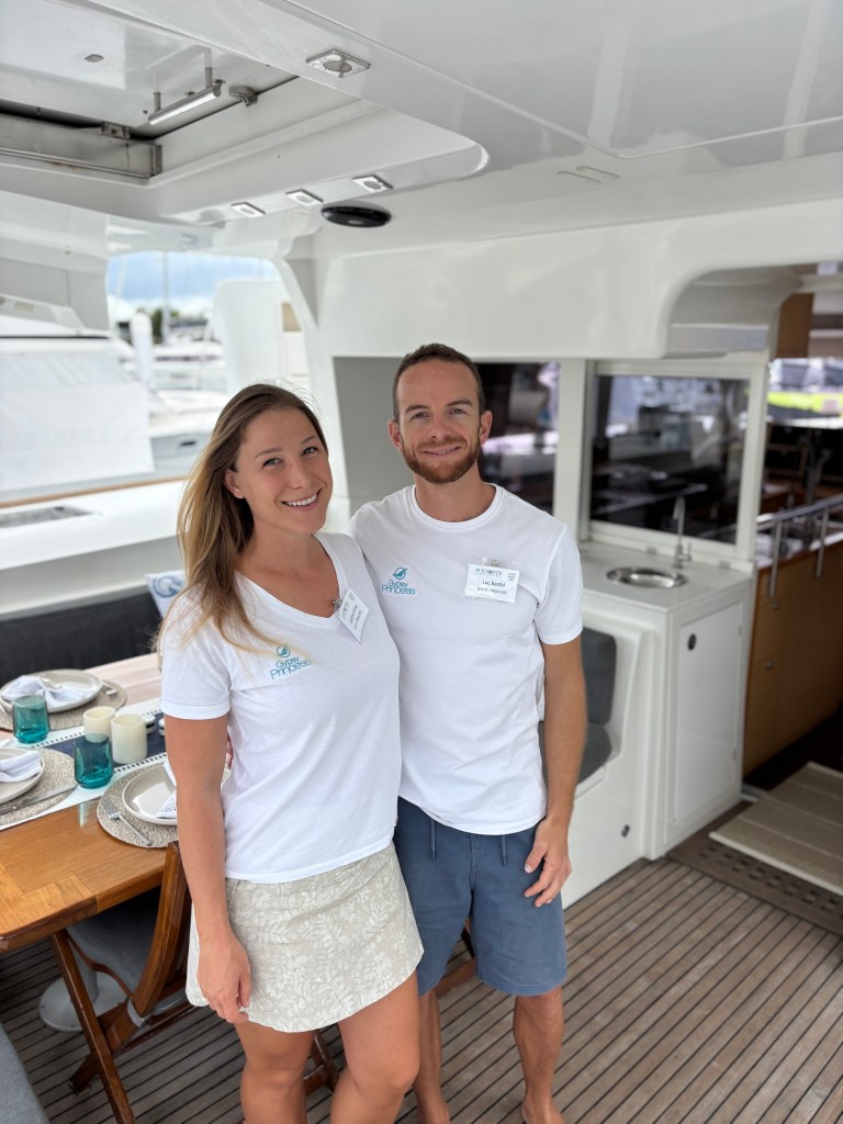 I met the crew of On A Whim III at the 2025 Fall BVI Charter Show, and they were honestly one of the sweetest, most genuine couples there. Clara made me a kombucha that was hands-down the best I’ve ever had—and I normally can’t stand kombucha. She’s warm, personable, and clearly loves cooking and taking care of guests. Henru, the captain, is a South African Yachtmaster and Divemaster with a calm, enthusiastic vibe and a real passion for showing people an unforgettable time on the water. Together, they just radiate happiness and genuine joy for what they do.